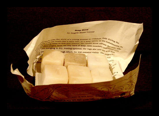 A present, a puzzle and a parable – Angela Lorenz’s work comes wrapped as a gift of soap with both a secret and a story. The colophon itself is printed on a reproduction of a page from a woman’s magazine, October 1956, titled “Mani di Fata” or Hands of the Fairy.” READ MORE