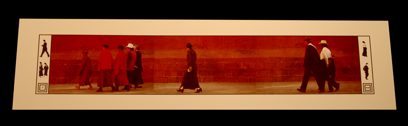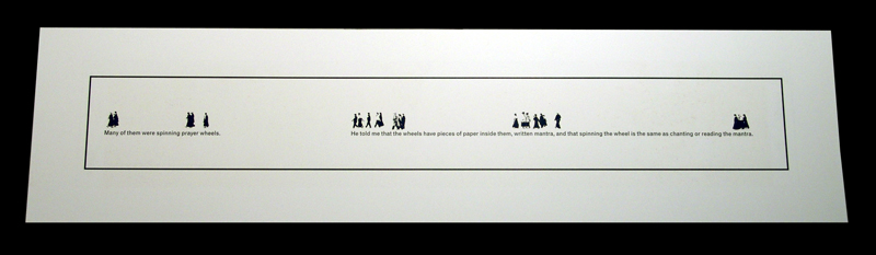 By Clifton Meador.  Artists’ book.  34 loose pages, stacked as in a traditional Tibetan book structure.  Tile-cloth inset printed in Meador’s font.  Wrapped in Tibetan cloth.