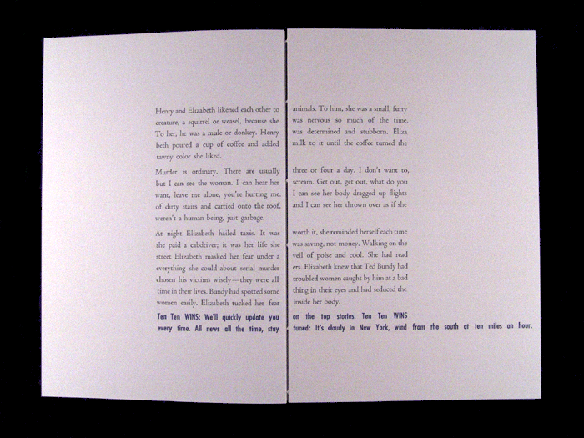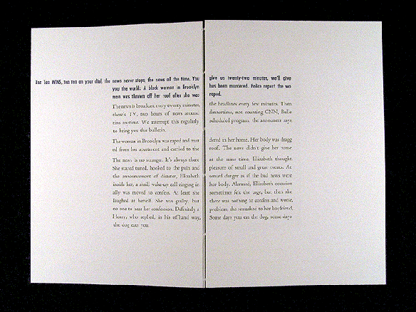 by Lynne Tillman and Inge Bruggeman. Artists' Book. Letterpress printed with photopolymer photographic illustrations. Edition of 37, 1993.