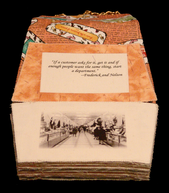 by Elizabeth Locke. Digital images printed on cotton, accordian bound. One of a kind.